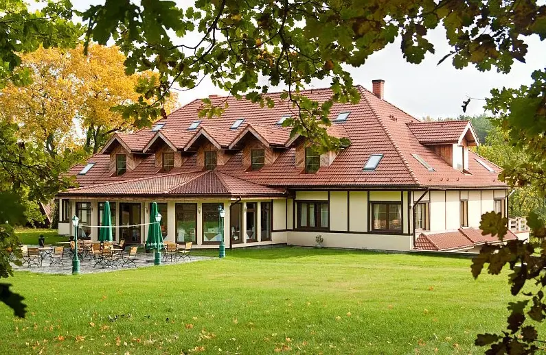 25 km od Gdańska, 4,5 ha zieleni nad Jeziorem Mezowskim w strefie Natura 2000.